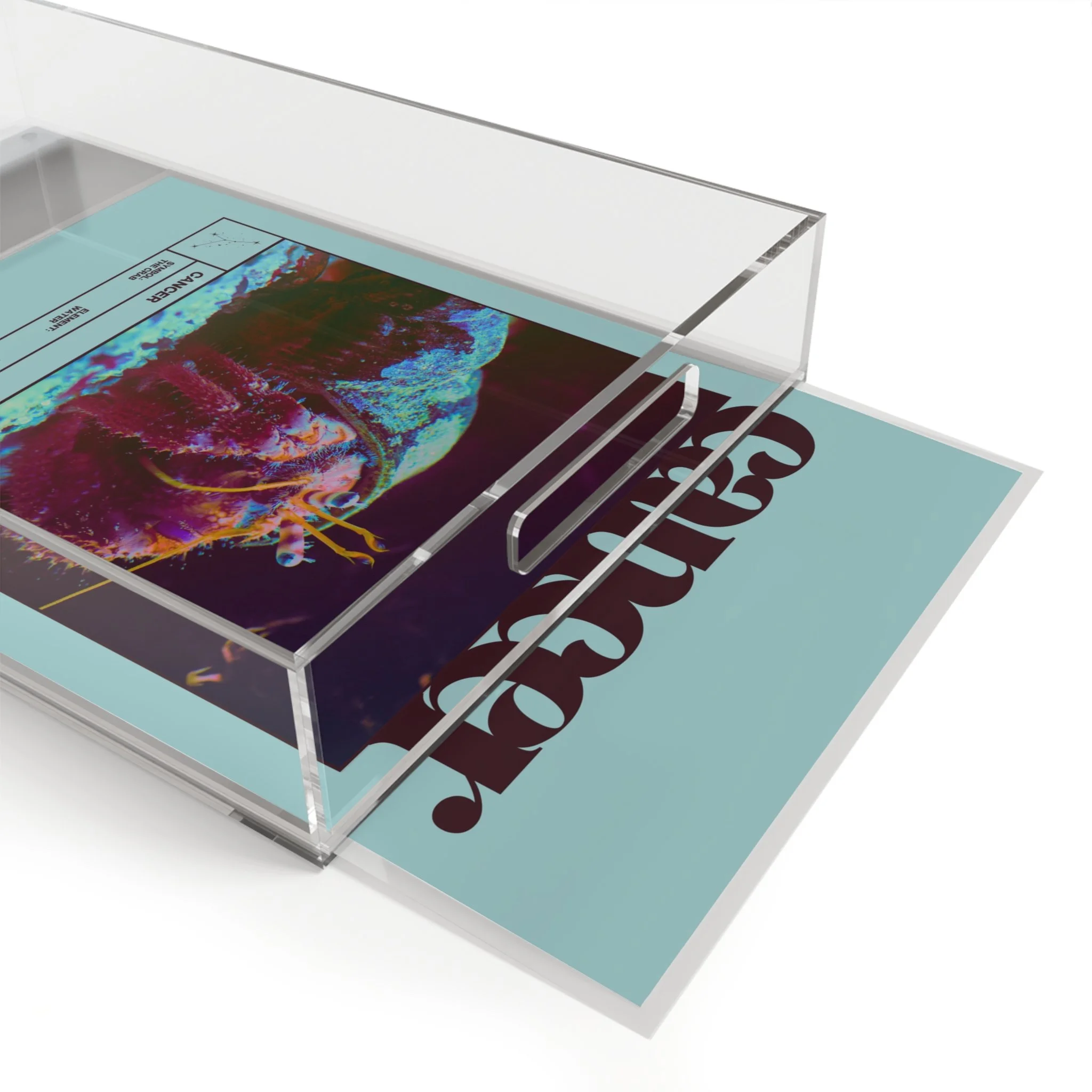 Whether you’re elevating your gardening experience, or giving all of your knick knacks, tchotchkes, coasters, and books a home – The Cancer Table Tray (11” x 17”) is serving as the perfect addition to your sacred space. The Cancer Table Tray is acrylic and comes with a high-quality laminated insert that goes into the base.